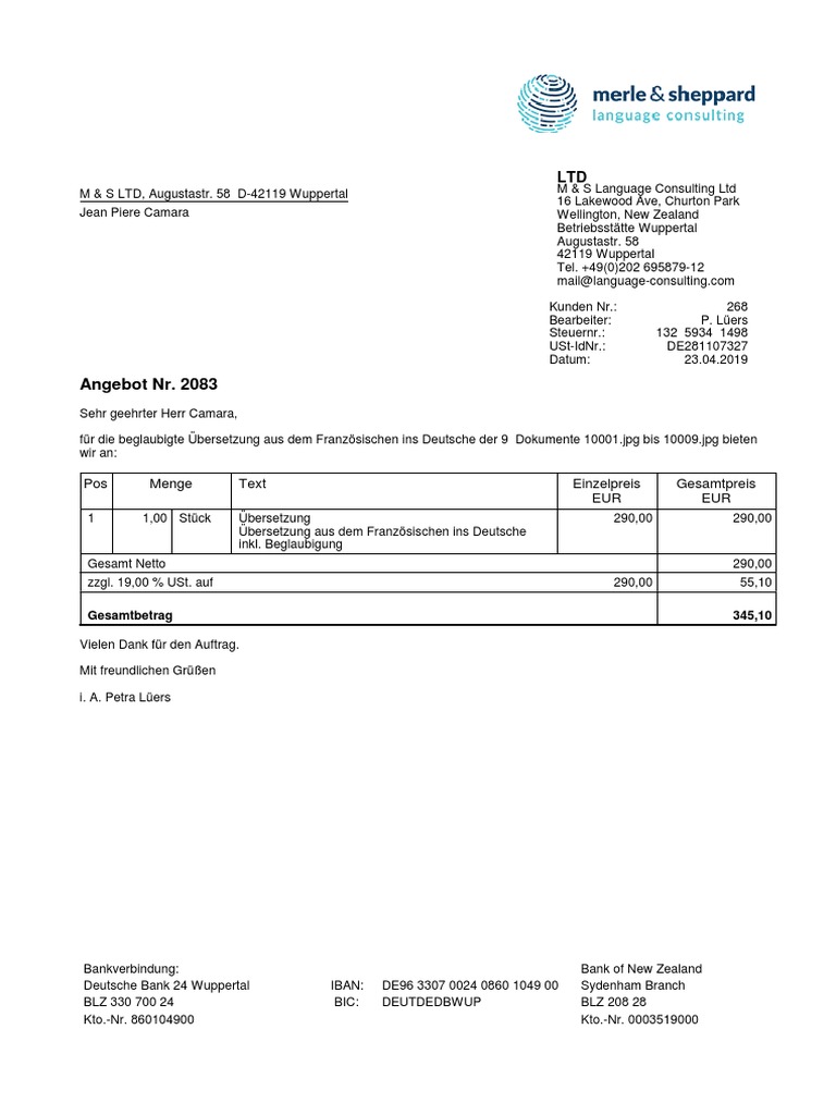 Deutsche bank 24 blz 100 700 24 kto.